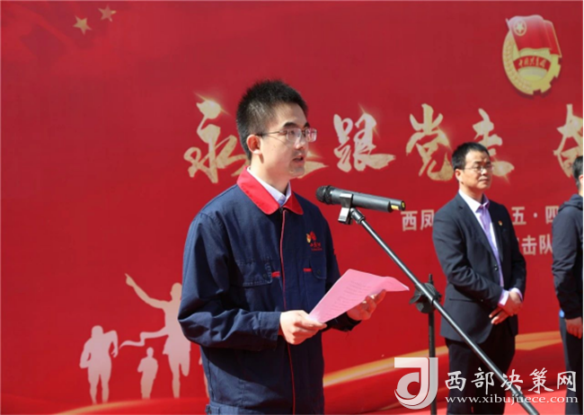集團(tuán)公司黨委副書記郭拴新宣讀《關(guān)于成立青年突擊隊(duì)的通知》