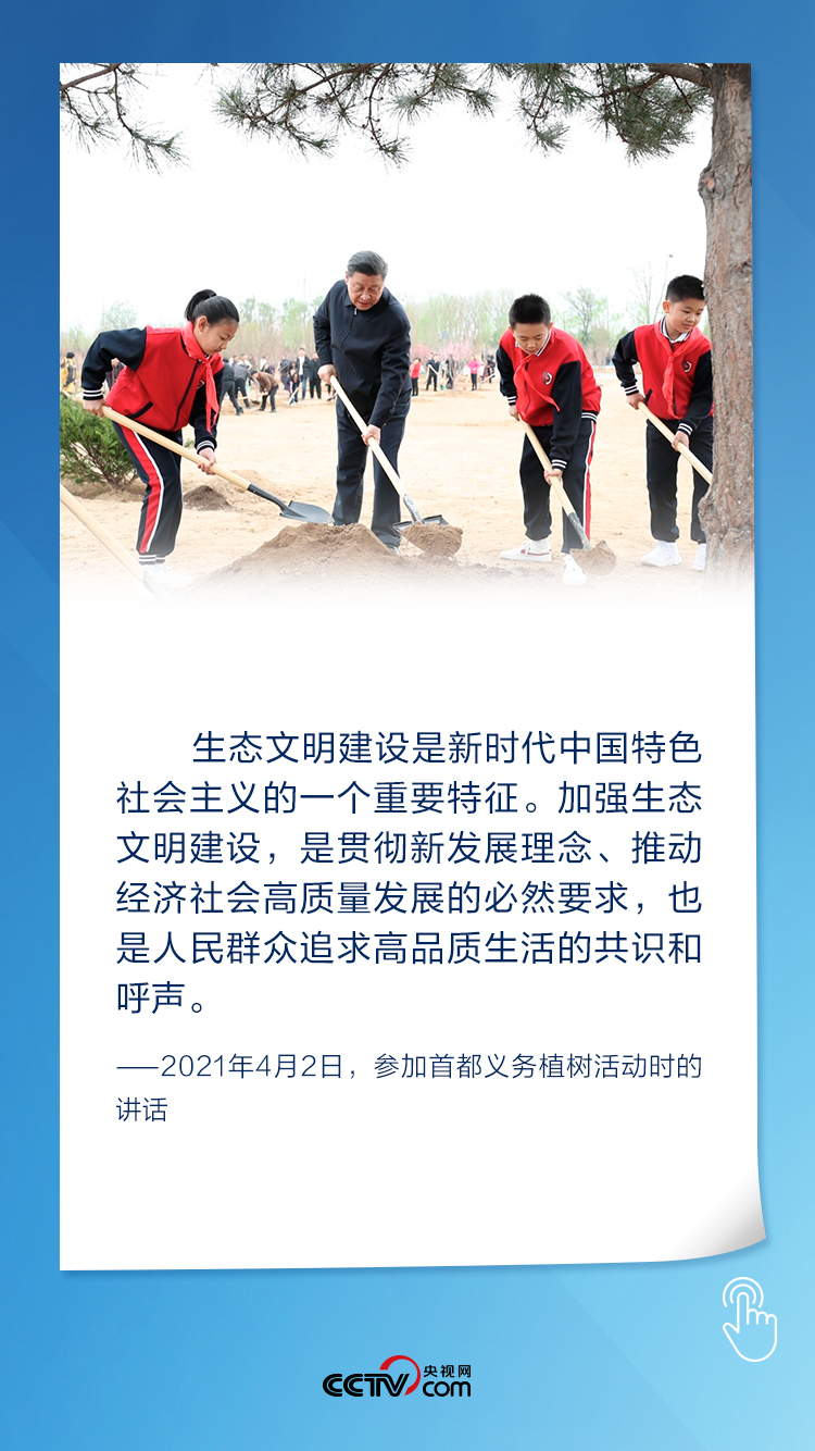 建設(shè)生態(tài)文明,關(guān)系人類福祉,關(guān)乎民族未來(lái)。新發(fā)展階段,堅(jiān)持推進(jìn)生態(tài)文明建設(shè),堅(jiān)持綠色發(fā)展,是中國(guó)新發(fā)展格局下推動(dòng)高質(zhì)量發(fā)展、創(chuàng)造高品質(zhì)生活的戰(zhàn)略需要。本月,習(xí)近平總書記連續(xù)第九年參加首都義務(wù)植樹活動(dòng),栽下一株株小樹苗,厚“植”綠色期望;同法國(guó)德國(guó)領(lǐng)導(dǎo)人舉行視頻峰會(huì),再次宣布碳達(dá)峰、碳中和目標(biāo);出席領(lǐng)導(dǎo)人氣候峰會(huì),首次提出“共同構(gòu)建人與自然生命共同體”;考察廣西時(shí)遠(yuǎn)眺桂林山水,囑托呵護(hù)好“大自然賜予中華民族的一塊寶地”。一步一履、一言一行,總書記為中國(guó)高質(zhì)量發(fā)展、人類與自然和諧共生標(biāo)定綠色方向。