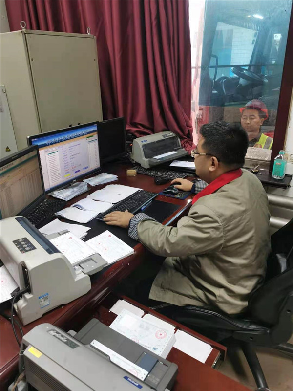 司磅員魏涵正在專心致志進行車輛稱重計量打票作業(yè),認真核對車輛信息,確保做到過磅速度快,票據(jù)準確無誤。
