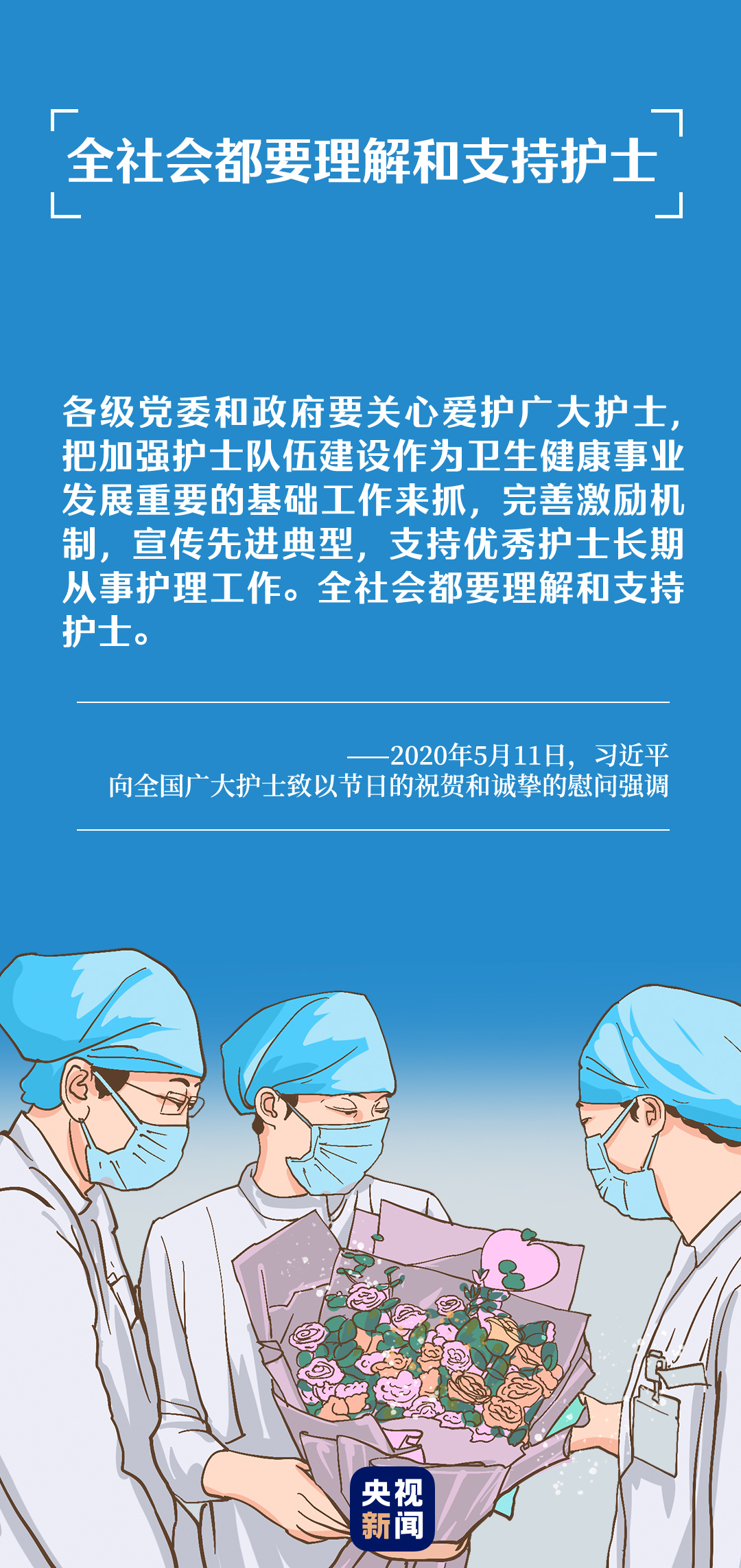 習(xí)近平總書記十分關(guān)心護(hù)士群體,要求各級黨委和政府關(guān)心愛護(hù)廣大護(hù)士,全社會都要理解和支持護(hù)士。