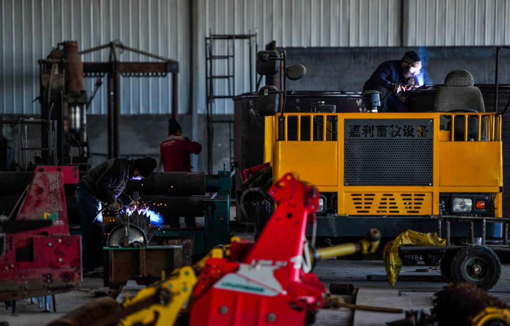 ↑2020年3月10日,工人在內(nèi)蒙古嘉利節(jié)水灌溉有限公司廠房內(nèi)加工零件。