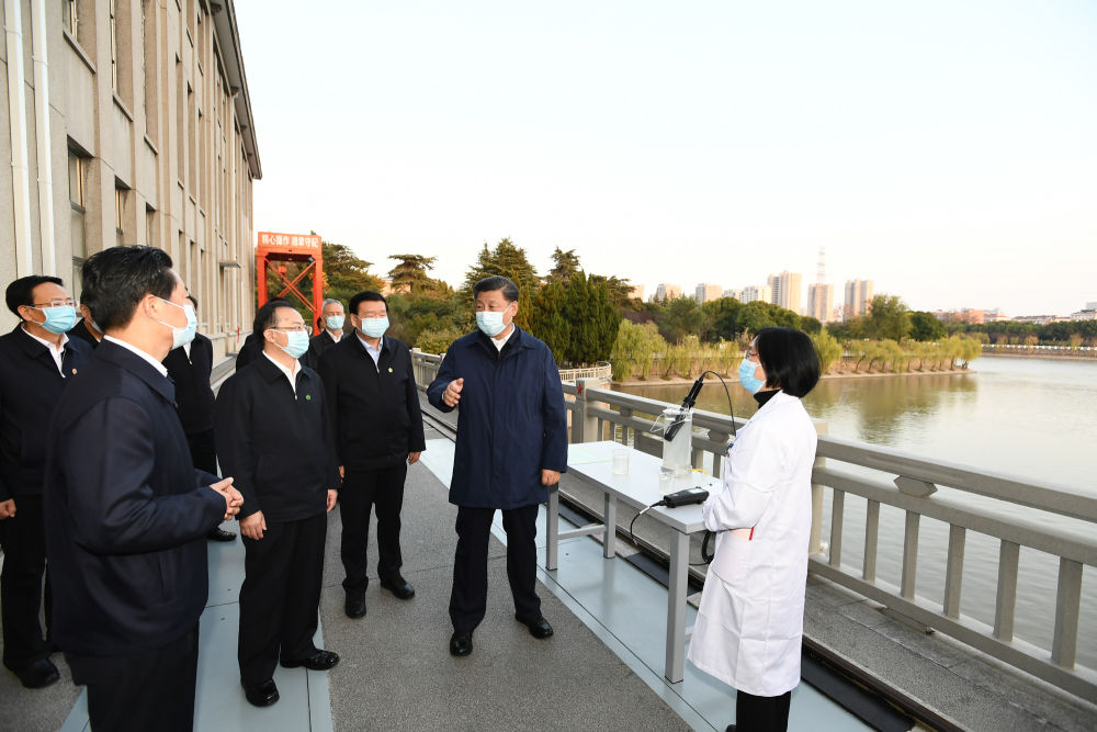 ↑2020年11月13日,習近平在江蘇省揚州市考察調研。這是習近平在江都水利樞紐,了解南水北調東線工程規(guī)劃建設和樞紐運行等情況。