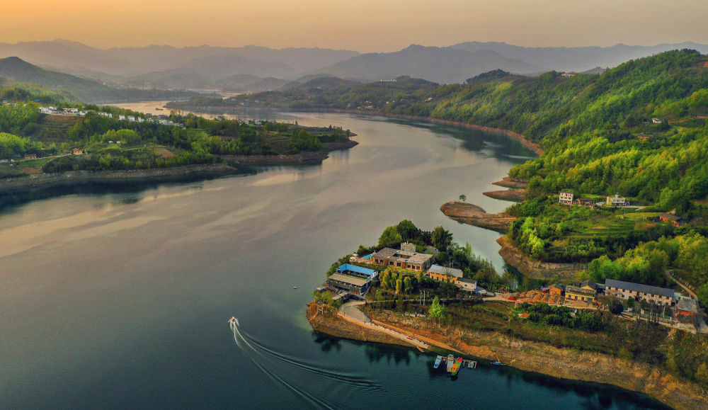 ↑陜西安康市流水鎮(zhèn)位于南水北調中線重要水源——漢江中游。近年來,當?shù)匾虻刂埔舜罅ν茝V有機農(nóng)產(chǎn)品的種植,發(fā)展鄉(xiāng)村旅游等低污染產(chǎn)業(yè)。這是流水鎮(zhèn)景色(3月27日攝)。
