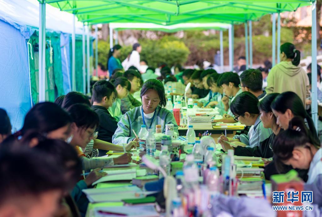 5月24日,漾濞一中高三年級學(xué)生在帳篷下學(xué)習(xí)。新華社記者胡超攝