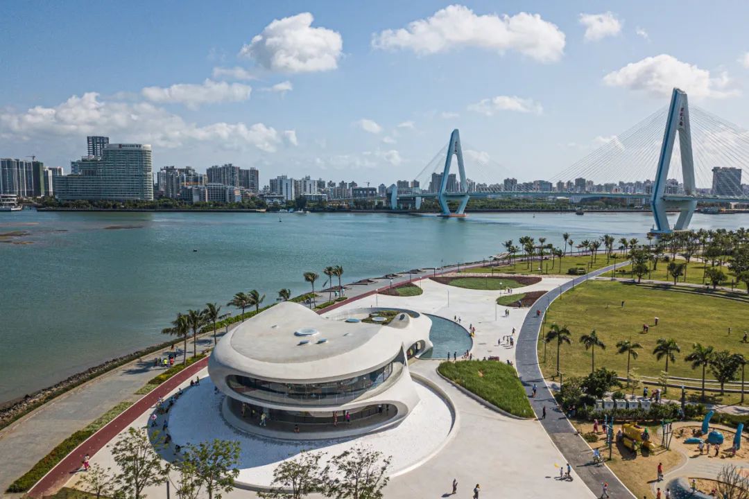 ▲“十四五”開局之年,也是海南全面深化改革開放和加快建設(shè)自由貿(mào)易港關(guān)鍵之年。這是5月3日在??谂臄z的云洞圖書館,遠(yuǎn)處是??诘貥?biāo)世紀(jì)大橋(無人機照片)。新華社記者 蒲曉旭 攝