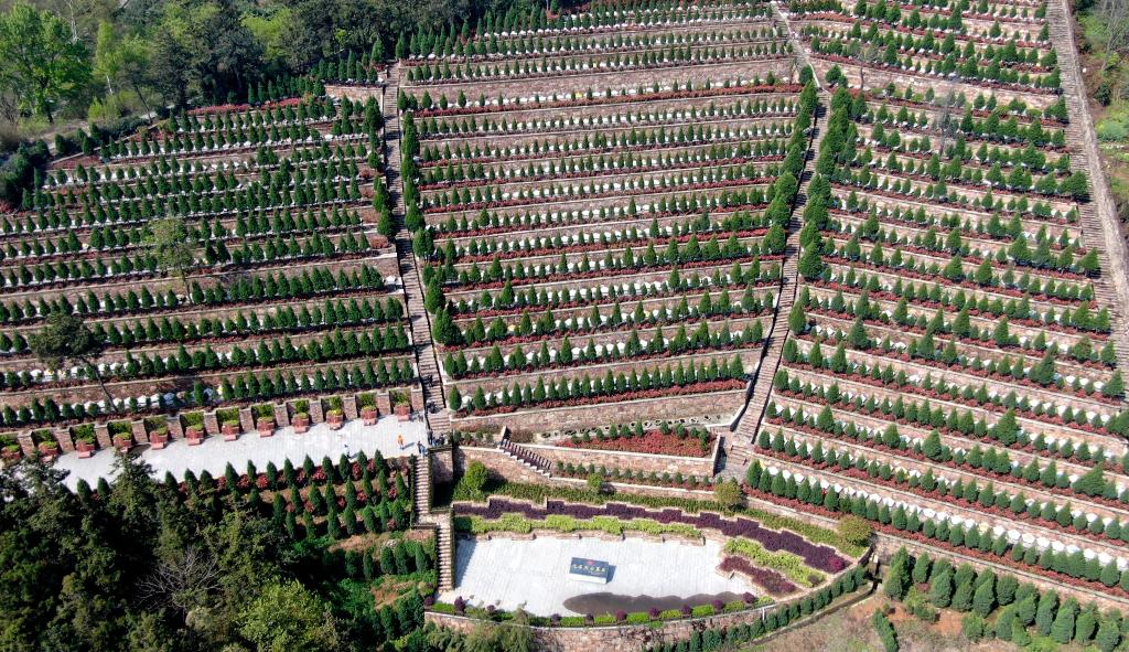 這是2021年4月4日拍攝的鄂豫皖蘇區(qū)首府烈士陵園(無人機(jī)照片)。新華社記者郝源攝
