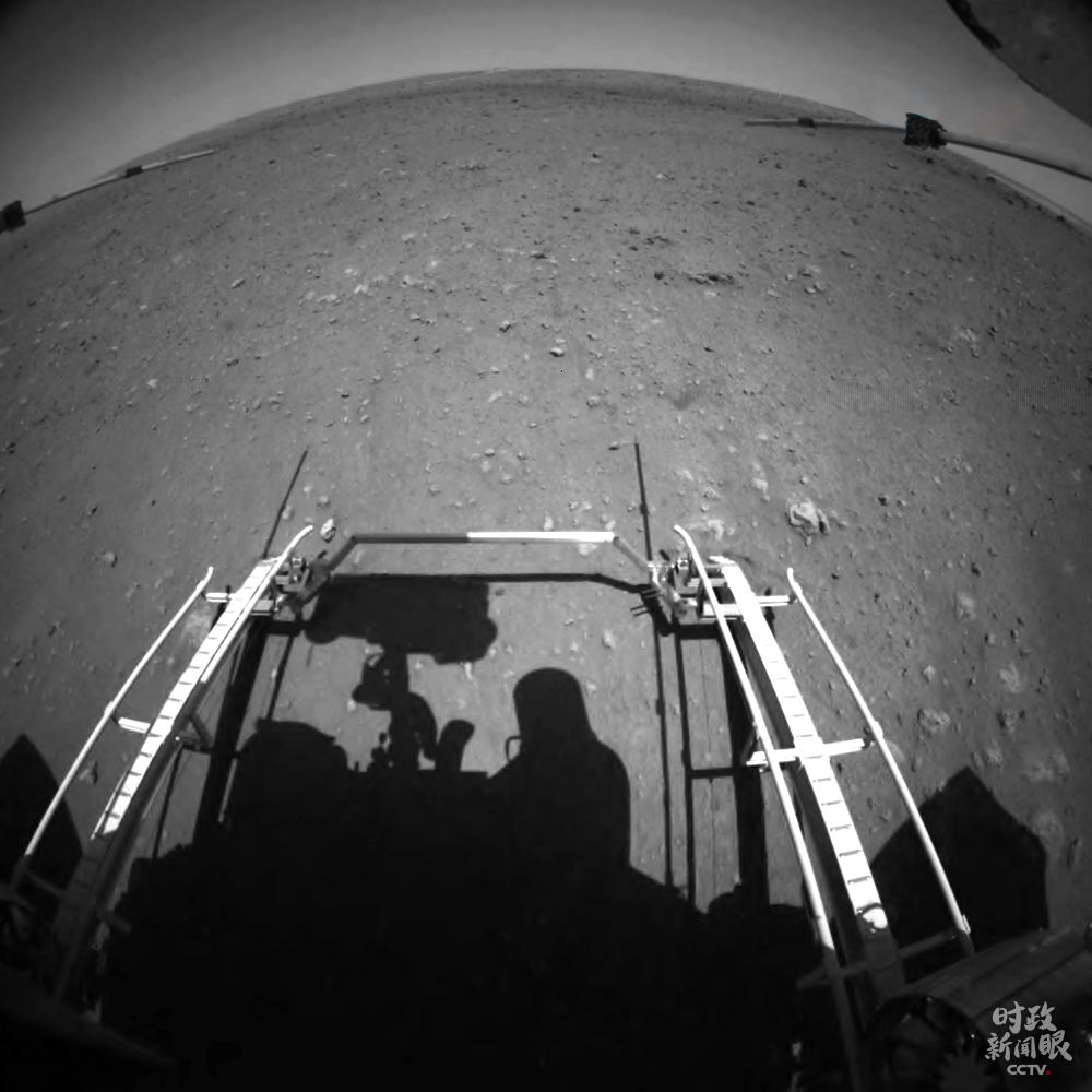 △2021年5月22日,“祝融號”火星車安全駛離著陸平臺,到達火星表面,開始巡視探測。(圖/國家航天局)