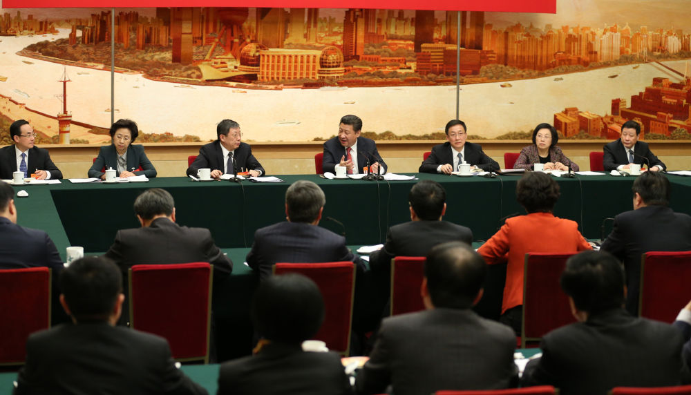 ↑2015年3月5日,習近平參加十二屆全國人大三次會議上海代表團的審議。