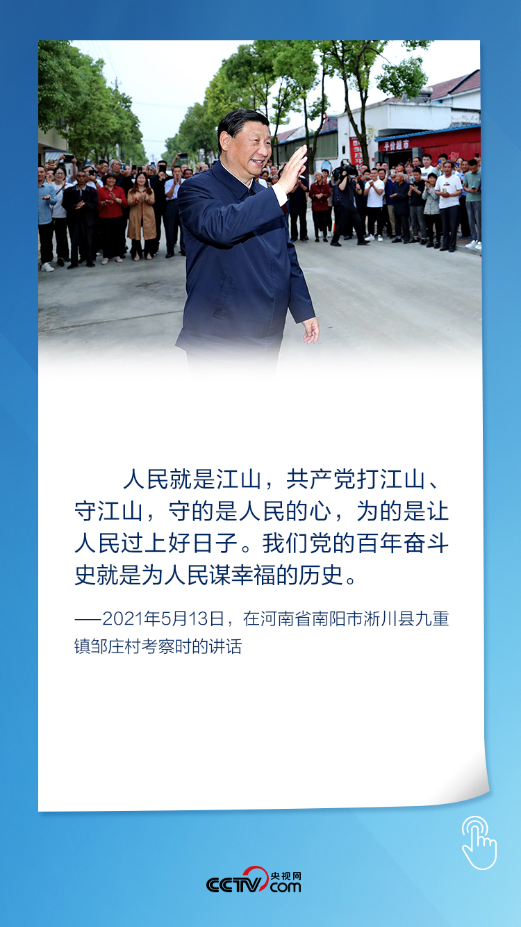 河南省南陽市、淅川縣陶岔渠首樞紐工程、九重鎮(zhèn)鄒莊村……一個個關(guān)聯(lián)地點,留下了總書記今年第六次國內(nèi)考察的足跡??吹揭泼翊遴l(xiāng)親們的日子越過越好,總書記衷心感謝無私奉獻的移民群眾,深情地說:“人民就是江山,共產(chǎn)黨打江山、守江山,守的是人民的心,為的是讓人民過上好日子。”