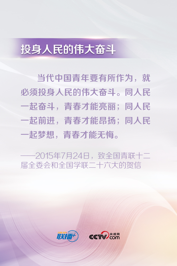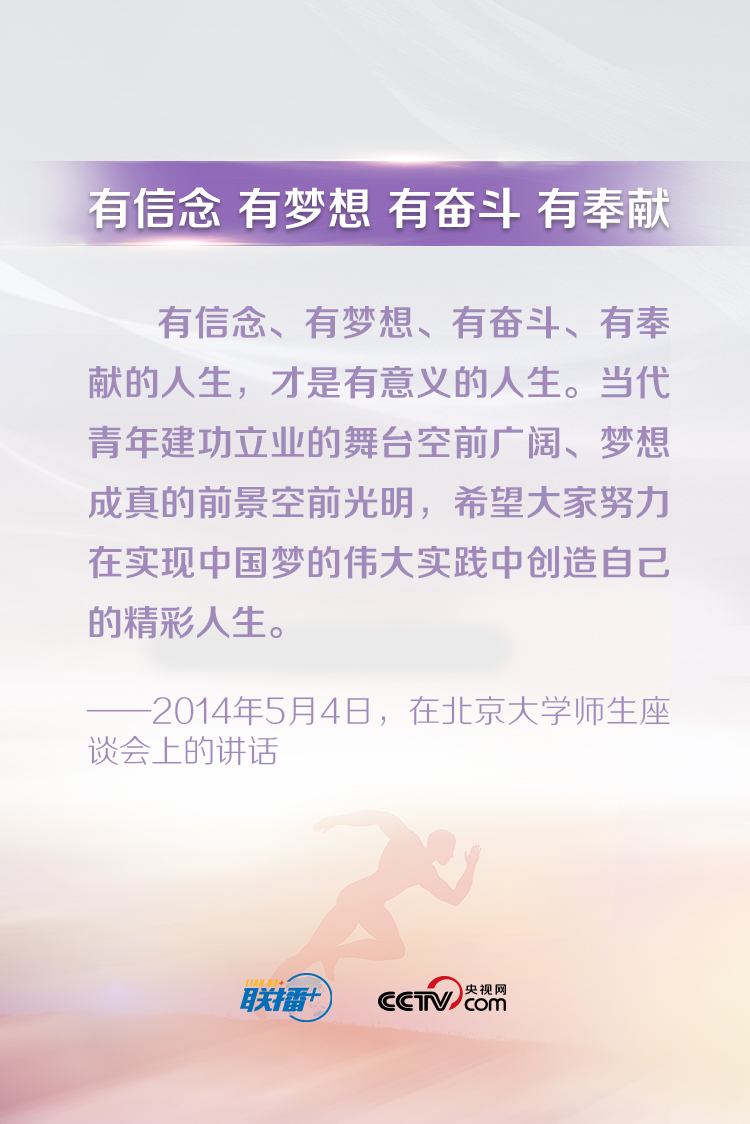 習近平總書記一直以來都十分關(guān)心青年成長成才,常常走近青年、傾聽青年、鼓勵青年。他說,“青年最富有朝氣、最富有夢想”,“中華民族偉大復(fù)興終將在廣大青年的接力奮斗中變?yōu)楝F(xiàn)實”。央視網(wǎng)《聯(lián)播+》特梳理總書記對廣大青年的寄語,與您一起學(xué)習。