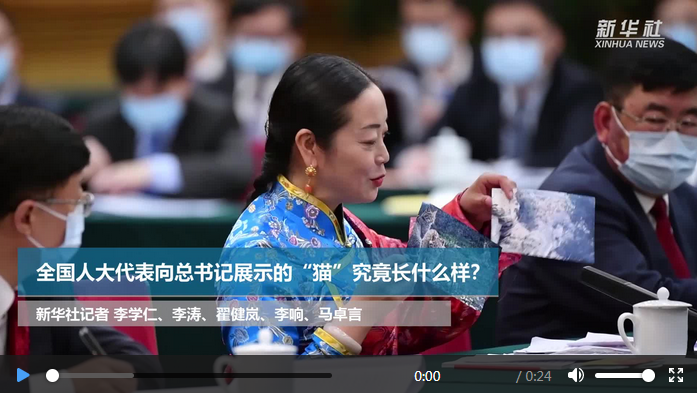 3月7日下午,人民大會(huì)堂東大廳,青海代表團(tuán)審議現(xiàn)場(chǎng),孔慶菊代表拿出照片,請(qǐng)坐在對(duì)面的習(xí)近平總書記觀看。一張照片中,是漫步在草叢中的荒漠貓;另一張,則是行走在樹叢中的雪豹。“以前很少見(jiàn)的珍稀物種,現(xiàn)在頻頻現(xiàn)身了。”孔慶菊說(shuō)。