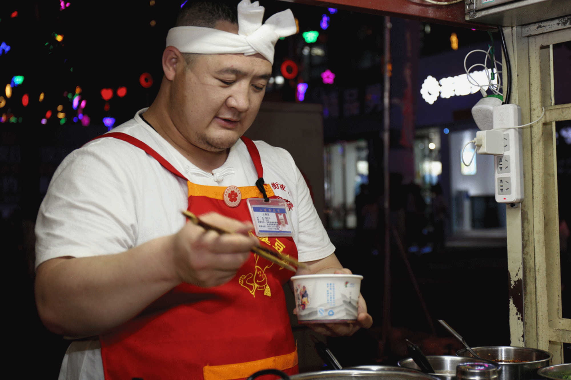 二道街,從18:00開始,道路兩旁才多了一些忙碌的身影。準(zhǔn)備食材、搭爐灶、擺桌椅,商販們一天的工作開始了。隨著人流逐漸增多,道路也變得擁擠起來。這種熙熙攘攘的氛圍,讓人心里感到特別踏實(shí)。