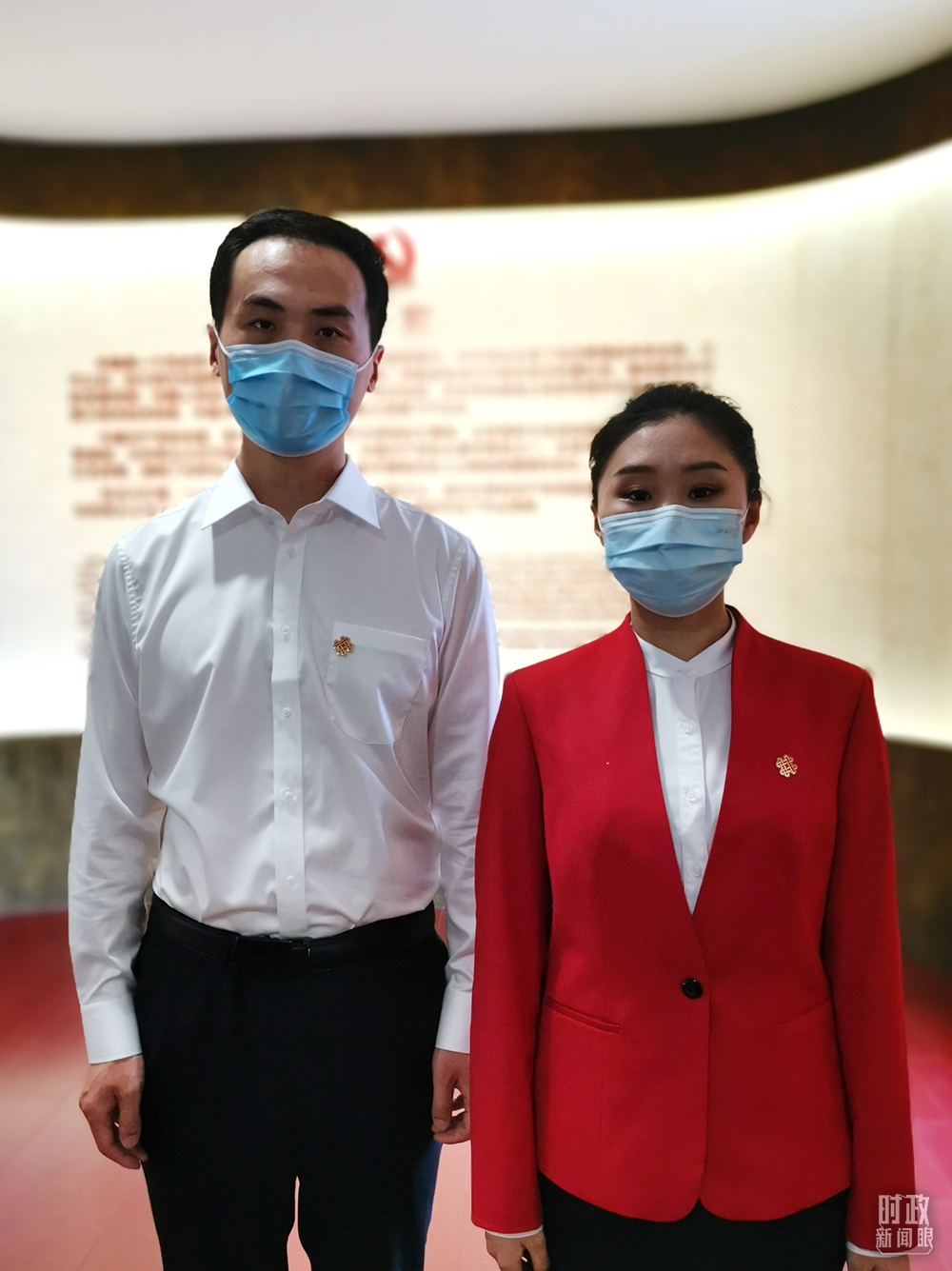 △“光輝偉業(yè) 紅色序章——北大紅樓與中國(guó)共產(chǎn)黨早期北京革命活動(dòng)主題展”講解員朱寧、謝尹楠。(總臺(tái)央視記者李曉周拍攝)