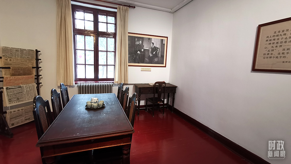 △李大釗常在辦公室與進(jìn)步青年共同討論、研究各種新思潮。1920年還在此會(huì)見共產(chǎn)國(guó)際代表維經(jīng)斯基,研究醞釀成立共產(chǎn)黨。(總臺(tái)央視記者李曉周拍攝)