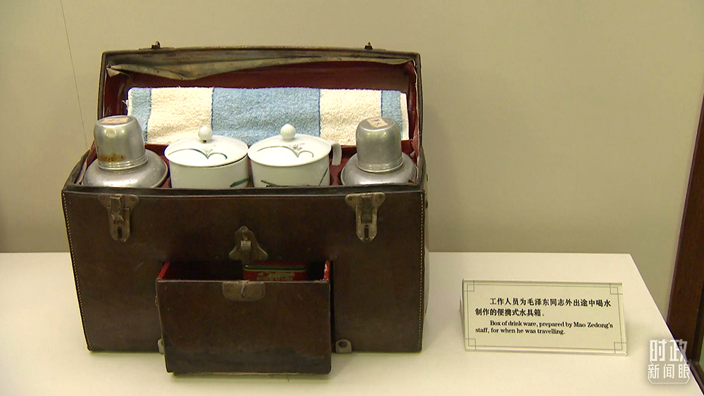 △這是工作人員為毛澤東外出途中喝水制作的便攜式水具箱,現(xiàn)陳列在豐澤園毛澤東同志故居。(總臺(tái)央視記者石偉明拍攝)