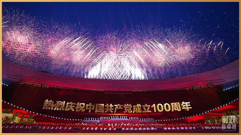 情景交響歌舞《人民至上》,再現(xiàn)舉國(guó)動(dòng)員、全民戰(zhàn)“疫”。鼓樂歌舞節(jié)目《新的天地》,一百面空中大鼓與地面巨型大鼓遙相呼應(yīng)。在主題曲《領(lǐng)航》的旋律中,高達(dá)16米的金色黨徽在國(guó)家體育場(chǎng)莊嚴(yán)升起。演出過程中,絢爛的焰火一次次盛放在國(guó)家體育場(chǎng)上空,并迅速在網(wǎng)上引發(fā)刷屏。