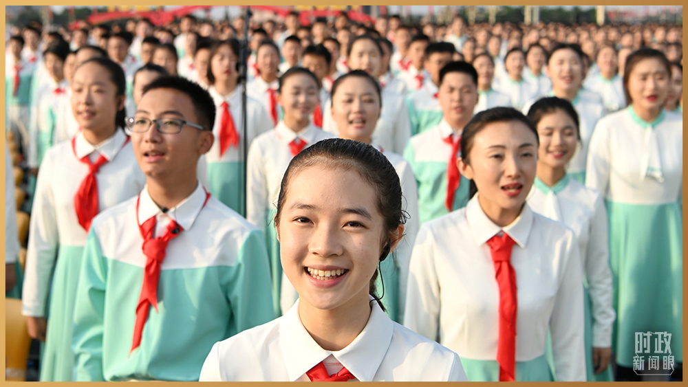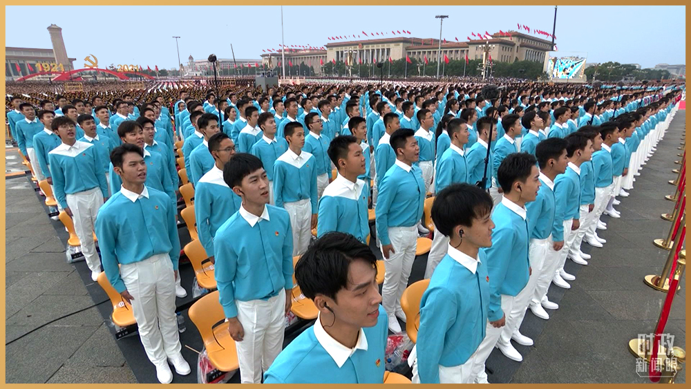 △慶祝大會(huì)現(xiàn)場的共青團(tuán)員和少先隊(duì)員代表(總臺(tái)記者孫楠拍攝)