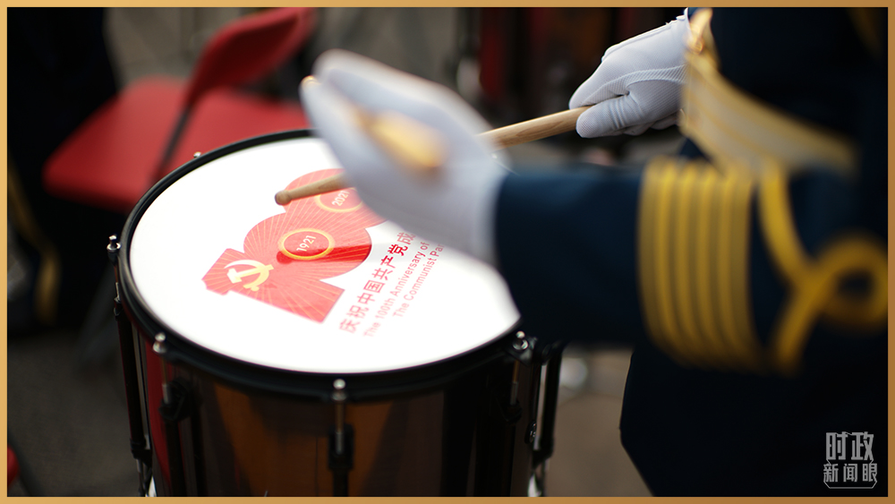 △ 鼓面上帶有建黨百年慶?;顒?dòng)標(biāo)識(shí)(總臺(tái)央視記者彭漢明拍攝)