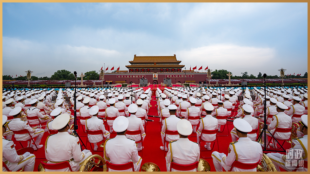 △中國人民解放軍聯(lián)合軍樂團(tuán)靜待演奏開始。(總臺(tái)記者廖江衡拍攝)