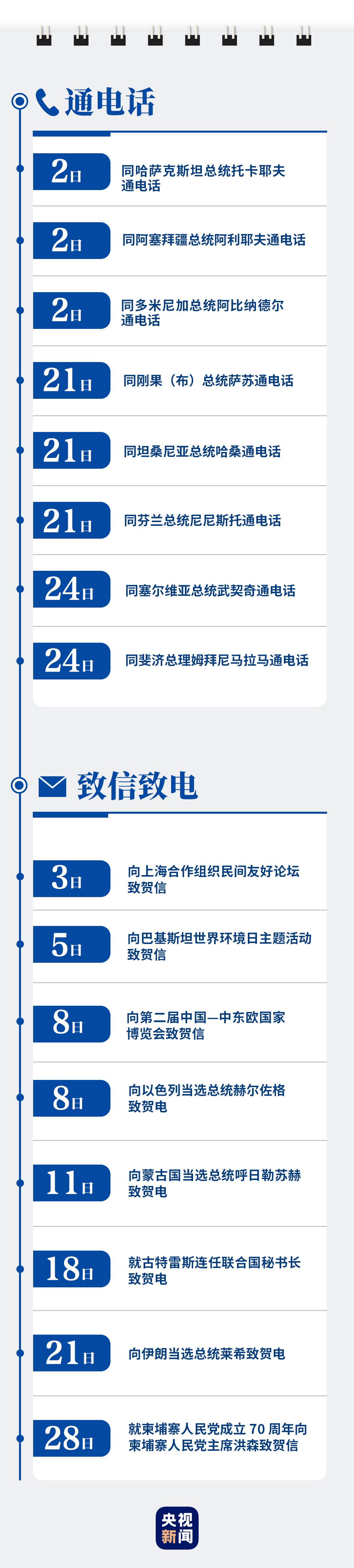 哈薩克斯坦總統(tǒng)托卡耶夫、阿塞拜疆總統(tǒng)阿利耶夫、多米尼加總統(tǒng)阿比納德?tīng)枴⑻股D醽喛偨y(tǒng)哈桑、剛果(布)總統(tǒng)薩蘇、塞爾維亞總統(tǒng)武契奇……多國(guó)政要在通電話時(shí),都向習(xí)近平主席表達(dá)了熱烈的祝賀。