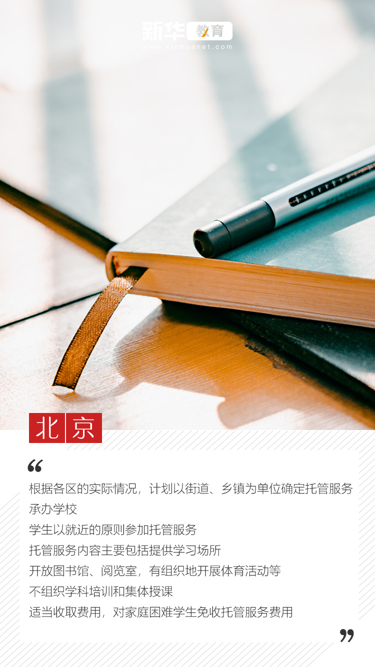 和上海市的做法類似,北京、武漢等地,也發(fā)揮資源優(yōu)勢(shì),積極志愿為學(xué)生提供暑期托管服務(wù)。與此同時(shí),北京明確要求“不組織學(xué)科培訓(xùn)和集體授課”;上海明確暑托班堅(jiān)持“公益、自愿”原則;山東泰安也提出“對(duì)家庭條件困難的學(xué)生,將免收服務(wù)費(fèi)用”,這些做法在給予家長(zhǎng)更多選擇的同時(shí),也進(jìn)一步為家長(zhǎng)減輕了育兒成本。