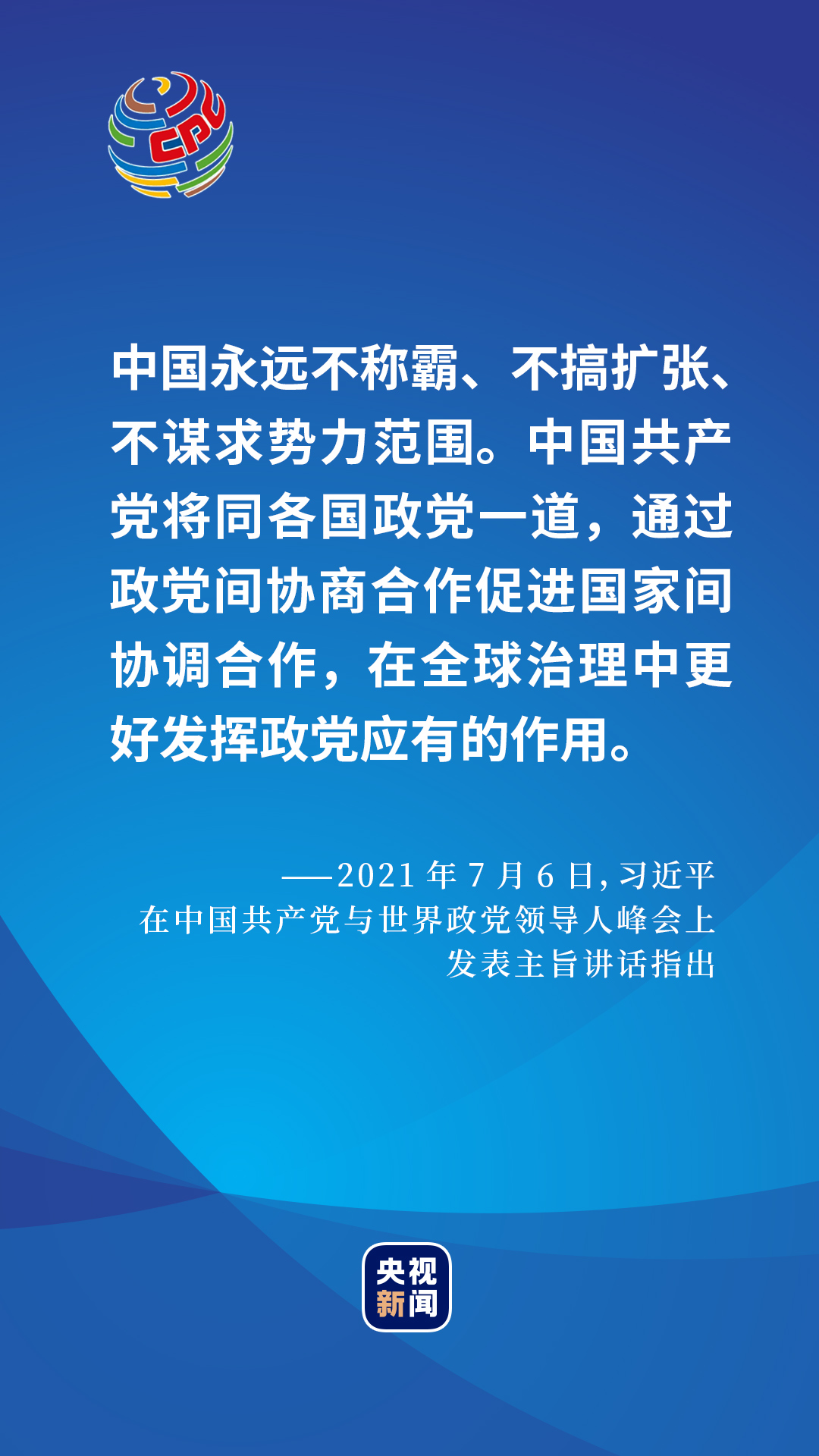2021年7月6日,在中國(guó)共產(chǎn)黨與世界政黨領(lǐng)導(dǎo)人峰會(huì)上,習(xí)近平總書(shū)記給出了一個(gè)百年大黨的選擇和主張。