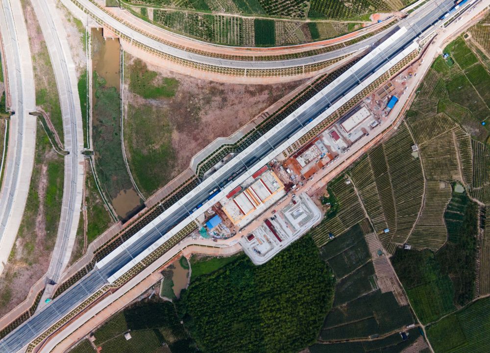 △建設(shè)中的中老鐵路野象谷車站(6月17日拍攝)