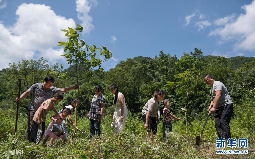 姚祖元(右一)與家人一起種樹(shù)(2019年7月13日攝)。在秦嶺深處的陜西省漢中市留壩縣火燒店鎮(zhèn),姚家5代人歷時(shí)70年深耕秦嶺的故事在當(dāng)?shù)丶矣鲬?hù)曉,傳為佳話(huà)。 新華社記者 陶明 攝