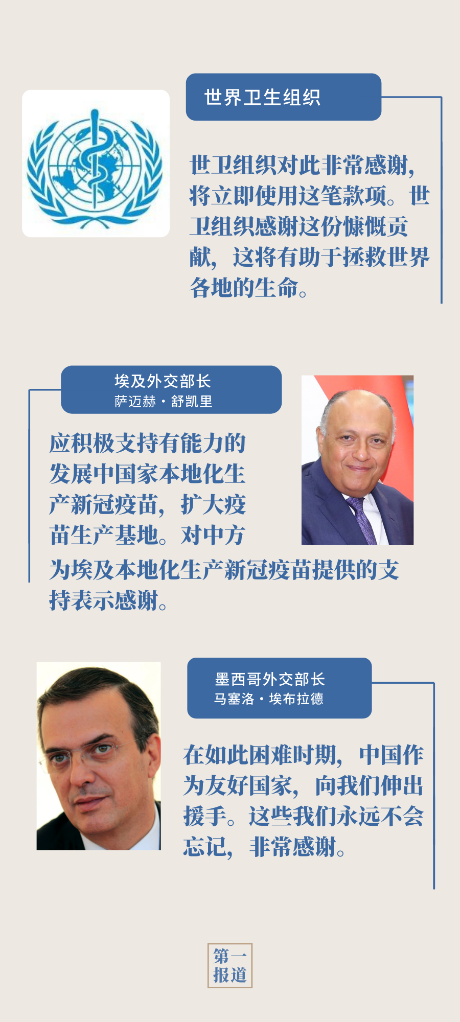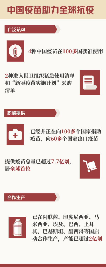 推動(dòng)全球抗疫,特別是幫助廣大發(fā)展中國(guó)家獲取疫苗、應(yīng)對(duì)疫情,中國(guó)的貢獻(xiàn)有目共睹,國(guó)際機(jī)構(gòu)和發(fā)展中國(guó)家代表予以高度評(píng)價(jià)——