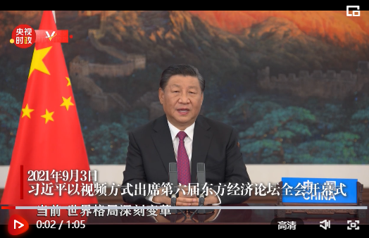 國家主席習近平9月3日應邀以視頻方式出席第六屆東方經(jīng)濟論壇全會開幕式并致辭。