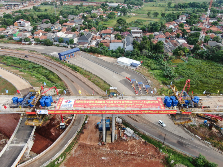這是2020年5月10日拍攝的印度尼西亞雅萬高鐵首個多跨連續(xù)梁合龍現(xiàn)場。雅萬高鐵項(xiàng)目是中國高鐵全系統(tǒng)、全要素、全生產(chǎn)鏈走出國門的“第一單”,也是“一帶一路”倡議的標(biāo)志性工程和印尼國家戰(zhàn)略項(xiàng)目。 新華社記者 杜宇 攝