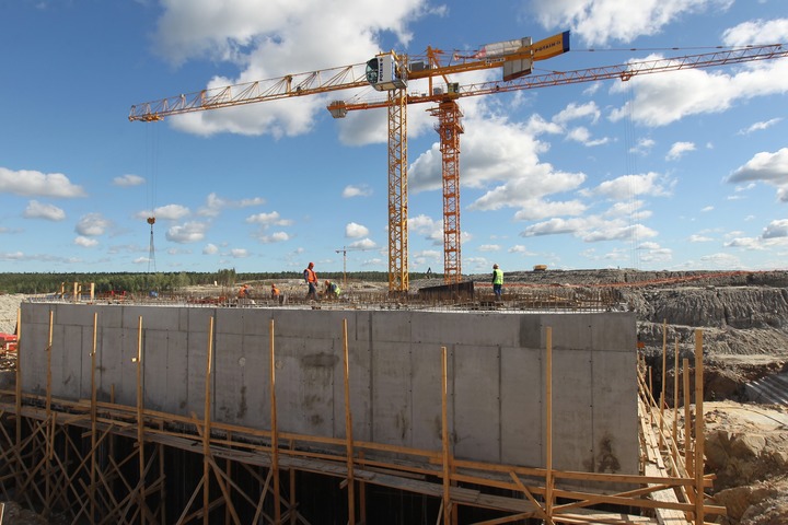 在俄羅斯西北部卡累利阿共和國凱姆河畔,工人在別洛巴羅什水電站施工現(xiàn)場工作(2017年8月15日攝)。別洛巴羅什水電站項(xiàng)目是俄羅斯首個由金磚國家新開發(fā)銀行提供融資支持的項(xiàng)目。新華社記者 魯金博 攝