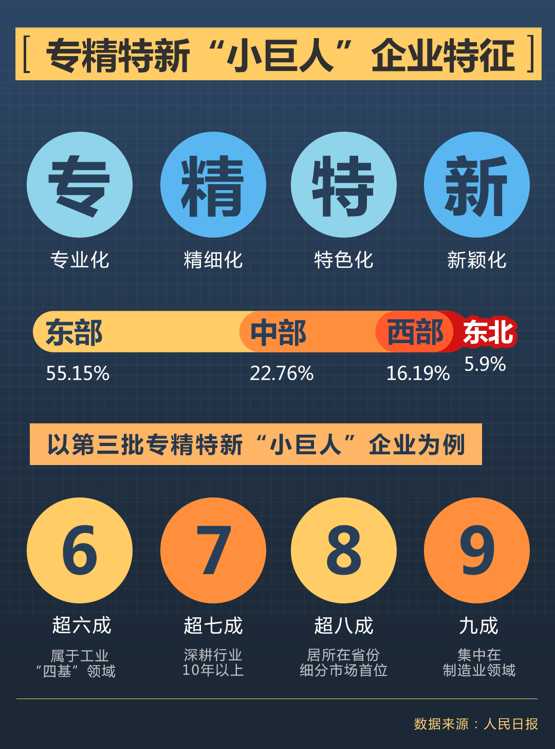 聚焦實業(yè),做精主業(yè)。第三批入選企業(yè)呈現出“6789”的特點:超六成屬于核心基礎元器件、關鍵基礎材料、先進基礎工藝、產業(yè)技術基礎領域,超七成深耕行業(yè)10年以上,超八成居所在省份細分市場首位,九成集中在制造業(yè)。