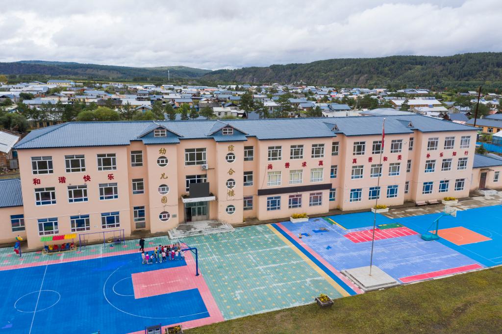 9月6日拍攝的北極鎮(zhèn)中心學校(無人機照片)。新華社記者謝劍飛 攝