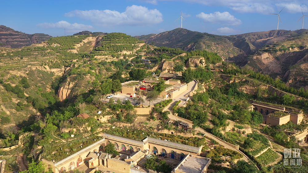 △坐落在黃土高原的楊家溝革命舊址,四周綠樹環(huán)繞。(總臺(tái)記者趙振凱拍攝)