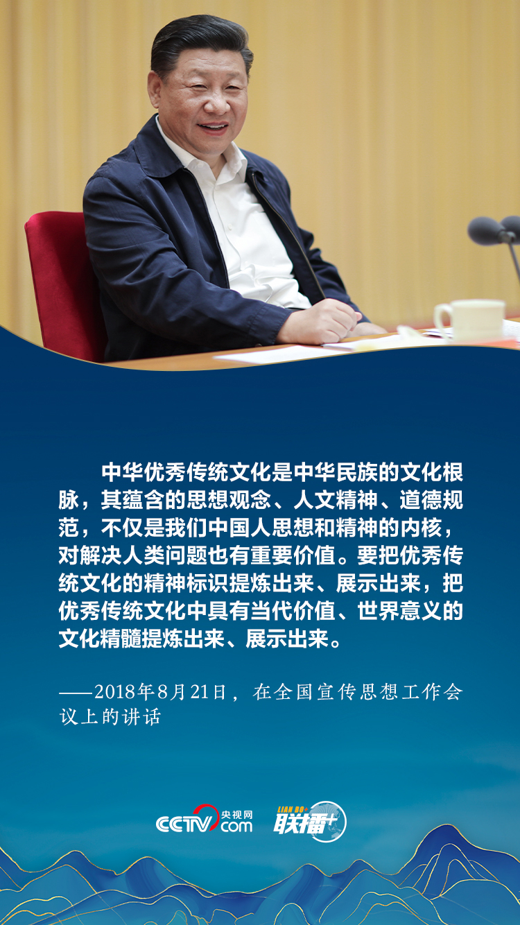 聯(lián)播+“中華優(yōu)秀傳統(tǒng)文化是中華民族的精神命脈,是涵養(yǎng)社會(huì)主義核心價(jià)值觀(guān)的重要源泉,也是我們?cè)谑澜缥幕な幹姓痉€(wěn)腳跟的堅(jiān)實(shí)根基。”