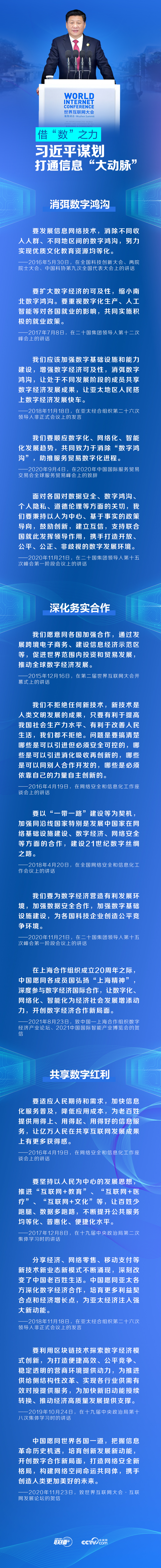 9月26日至28日,以“邁向數(shù)字文明新時代——攜手構(gòu)建網(wǎng)絡(luò)空間命運(yùn)共同體”為主題的2021年世界互聯(lián)網(wǎng)大會烏鎮(zhèn)峰會將在浙江烏鎮(zhèn)召開。央視網(wǎng)《聯(lián)播+》特梳理總書記關(guān)于數(shù)字化發(fā)展的重要論述,與您一起學(xué)習(xí)領(lǐng)悟。
