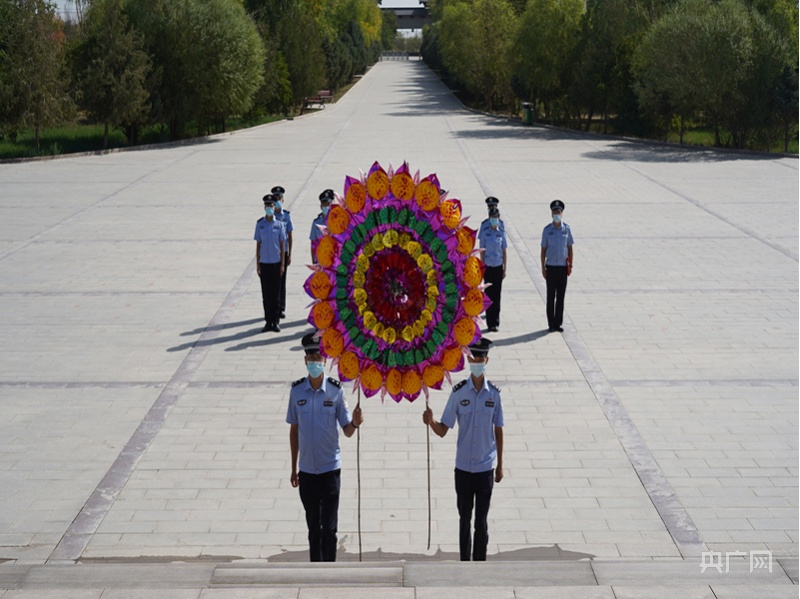 民警們向紀(jì)念碑敬獻(xiàn)花圈。邱柯兵 攝 央廣網(wǎng)發(fā)