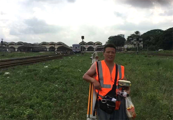 在中鐵一局三公司孟加拉帕德瑪大橋鐵路連接線項(xiàng)目,唐飛帶隊(duì)進(jìn)行前期控制網(wǎng)復(fù)測(cè),因前期各項(xiàng)準(zhǔn)備工作還未到位,來到這個(gè)陌生的國度,唐飛面臨的是一個(gè)語言不通、無后勤保障、自然條件惡劣的環(huán)境。沒有翻譯,唐飛就用翻譯軟件翻譯生僻的英語和設(shè)計(jì)、監(jiān)理溝通;沒有合適的工人,唐飛和隊(duì)員們就自己挖坑、抬樁子;沒有食堂,他們連續(xù)吃了一個(gè)月的方便面午餐。孟加拉位于熱帶地區(qū),雨水多且來勢(shì)迅猛,雨來時(shí),唐飛他們就在雨中堅(jiān)持放線,雨太大實(shí)在無法觀測(cè)時(shí),他們就站在雨中打著傘,用塑料袋保護(hù)著儀器,直到雨停后繼續(xù)觀測(cè)。
