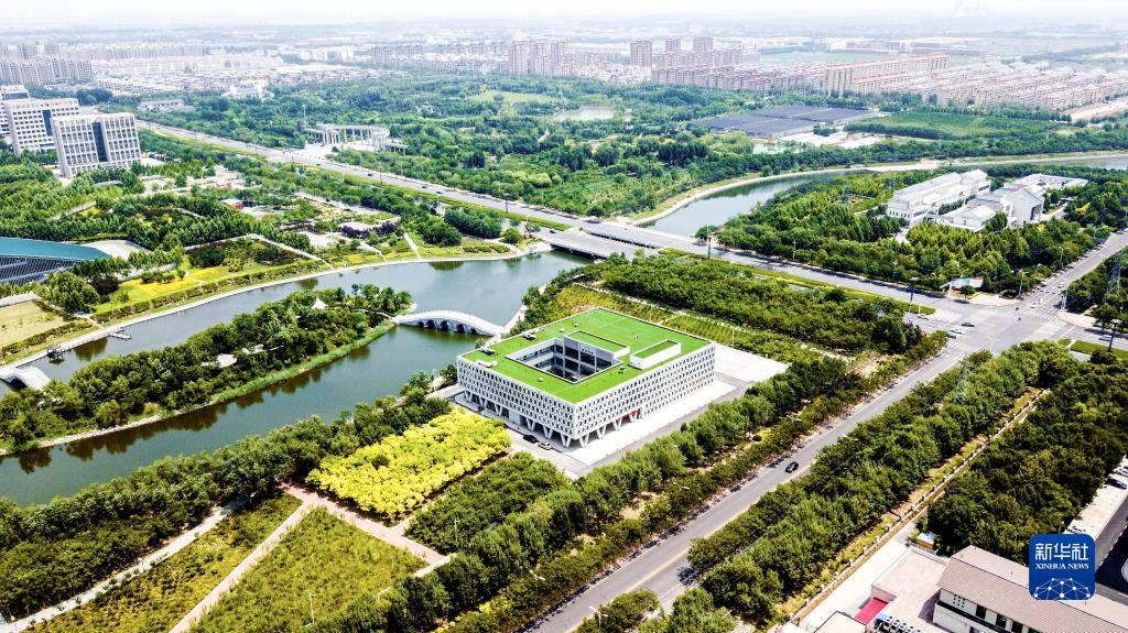這是2018年6月24日拍攝的山東省東營市墾利區(qū)城市景色(無人機(jī)照片)。新華社記者 吳剛 攝