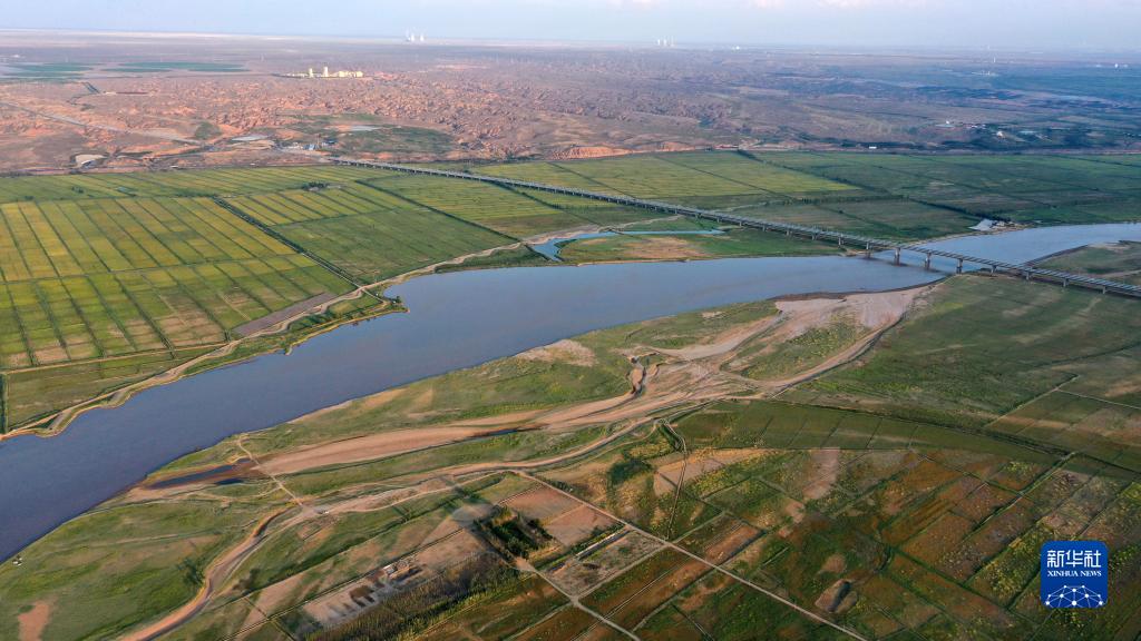 這是2021年8月28日拍攝的黃河寧夏銀川段景色(無人機(jī)照片)。新華社記者 王鵬 攝