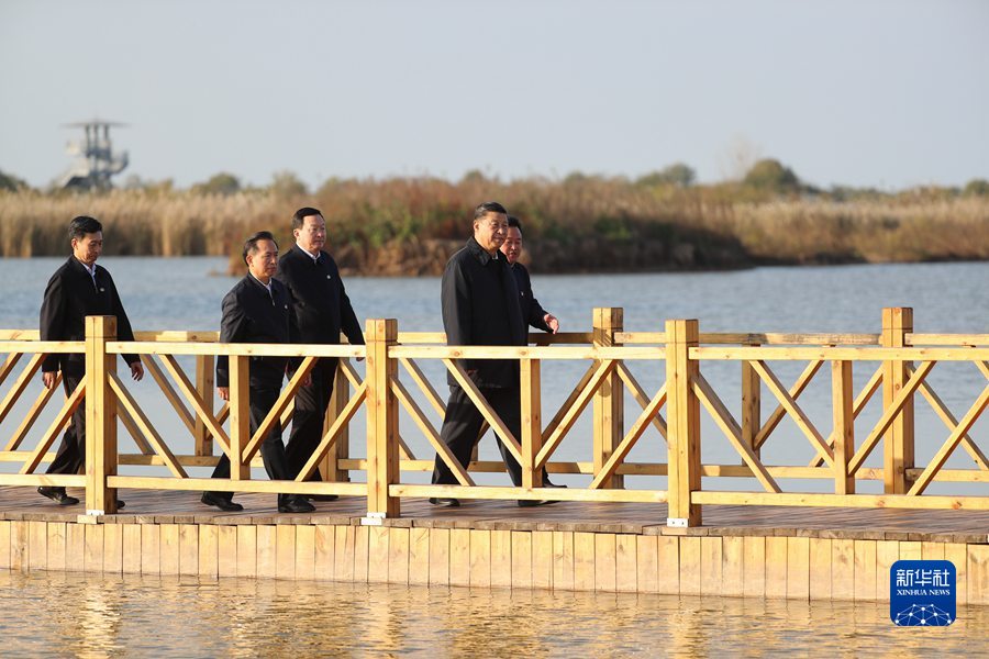 10月22日下午,中共中央總書記、國家主席、中央軍委主席習(xí)近平在山東省濟(jì)南市主持召開深入推動(dòng)黃河流域生態(tài)保護(hù)和高質(zhì)量發(fā)展座談會(huì)并發(fā)表重要講話。這是座談會(huì)前,習(xí)近平20日下午在東營市黃河三角洲國家級自然保護(hù)區(qū)考察。 新華社記者 李學(xué)仁 攝