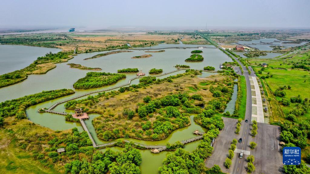 2021年5月13日拍攝的山東黃河三角洲國家級自然保護(hù)區(qū)景色(無人機(jī)照片)。新華社記者 郭緒雷 攝