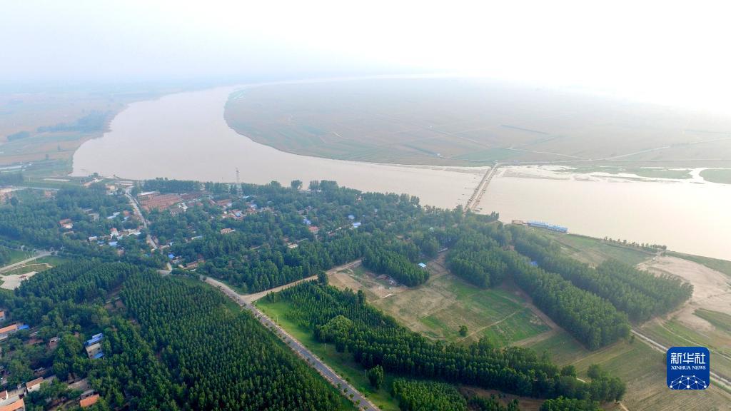 河南省蘭考縣東壩頭鄉(xiāng)拍攝的黃河河道(2018年6月19日攝,無人機(jī)照片)。新華社記者 馮大鵬 攝