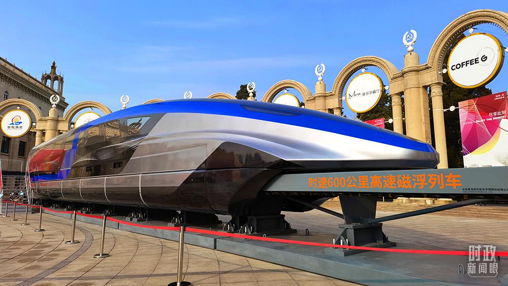 △時(shí)速600公里高速磁浮列車(chē),這是實(shí)車(chē)的五分之一。(總臺(tái)央視記者石丞拍攝)