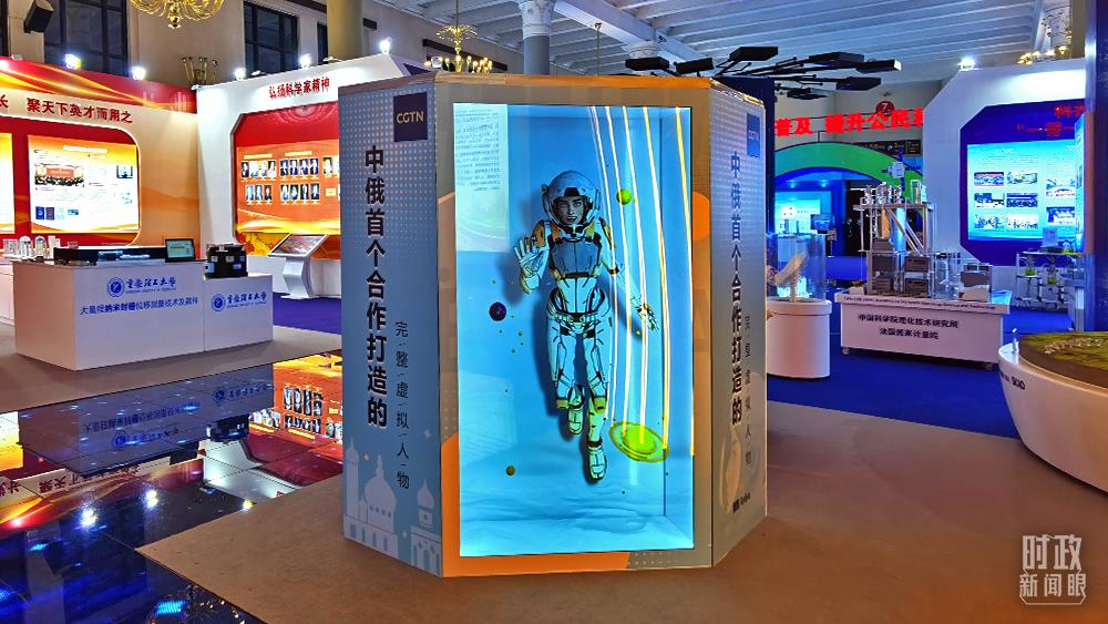 △這是通過(guò)三維全息裝置展示的中俄合作打造的完整虛擬人物“娜娜”。(總臺(tái)央視記者郭鴻拍攝)