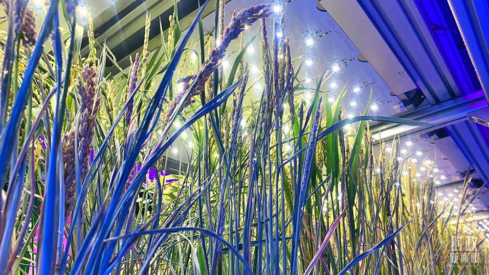 △無(wú)人植物工廠水稻育種加速器,采用多層立體栽培精準(zhǔn)調(diào)控方式,破解了水稻生育期由120天減半至60天的技術(shù)難題。目前畝產(chǎn)600多公斤。(總臺(tái)央視記者范一鳴拍攝)