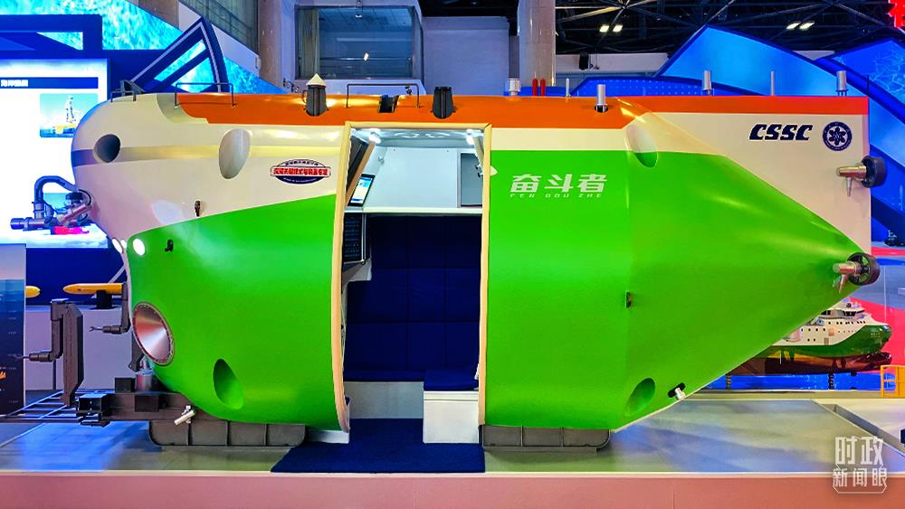 △“奮斗者”號(hào)全海深載人潛水器模型。(總臺(tái)央視記者范一鳴拍攝)