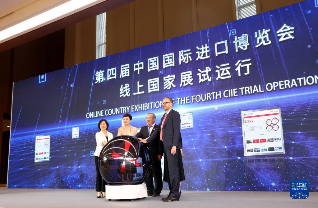 10月13日,第四屆中國國際進(jìn)口博覽會線上國家展試運(yùn)行啟動儀式在國家會展中心(上海)舉行。新華社記者 方喆 攝