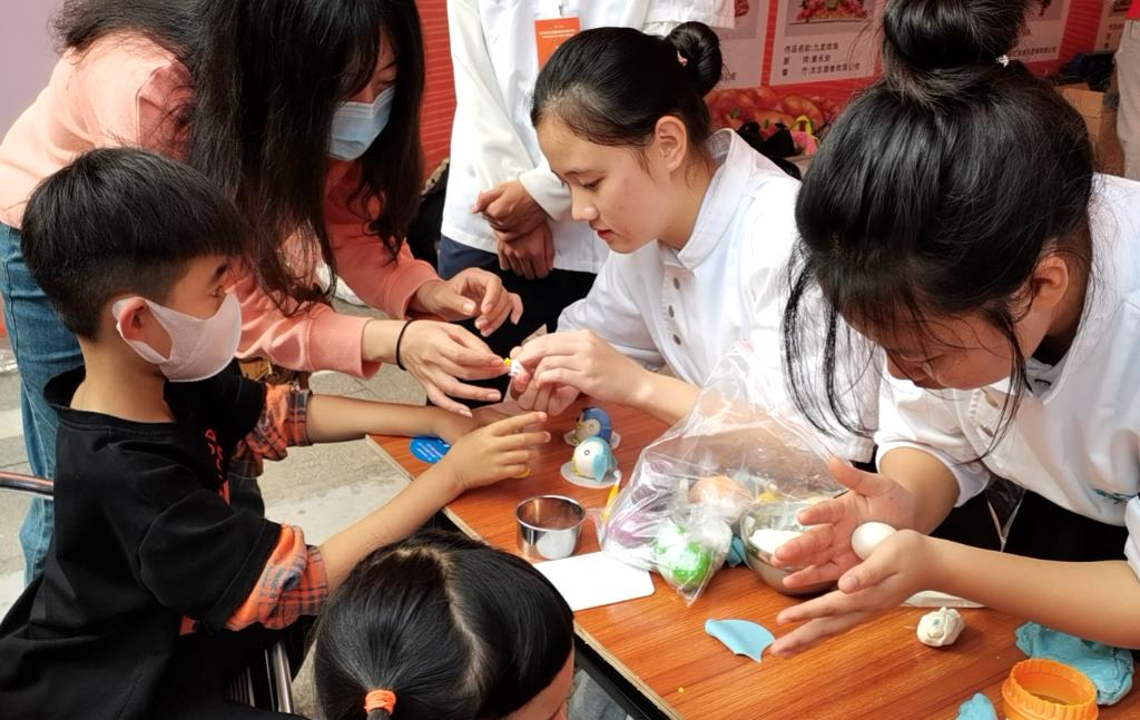 2021年3月20日,當(dāng)天開幕的粵菜師傅工程中山美食文化周上,技校學(xué)生正在現(xiàn)場(chǎng)展示粵式點(diǎn)心的制作技藝。 新華社記者魏蒙攝